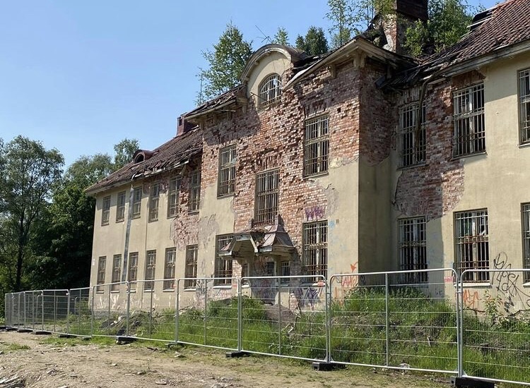 ”Fasta paviljongen. Sedan tidigare är det förbjudet att vistas i fastigheten. Det är också riskfyllt på utsidan. Material lossnar och faller. Kommunen har satt upp ett staket, men är väl medveten om att den påhittige kan ta sig in. Snälla, sprid att det är farligt.”